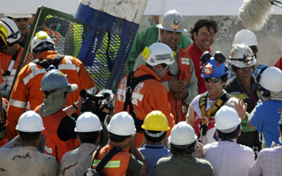 Cuando a las 16.31 hora local (19.31 GMT) emergió de la veta a bordo de la cápsula “Fénix 2″, el minero fue recibido con aplausos y el típico grito “ceachei” con el que también se celebró la vuelta a la libertad de sus 20 compañeros, cuyos rescates precedieron el suyo.